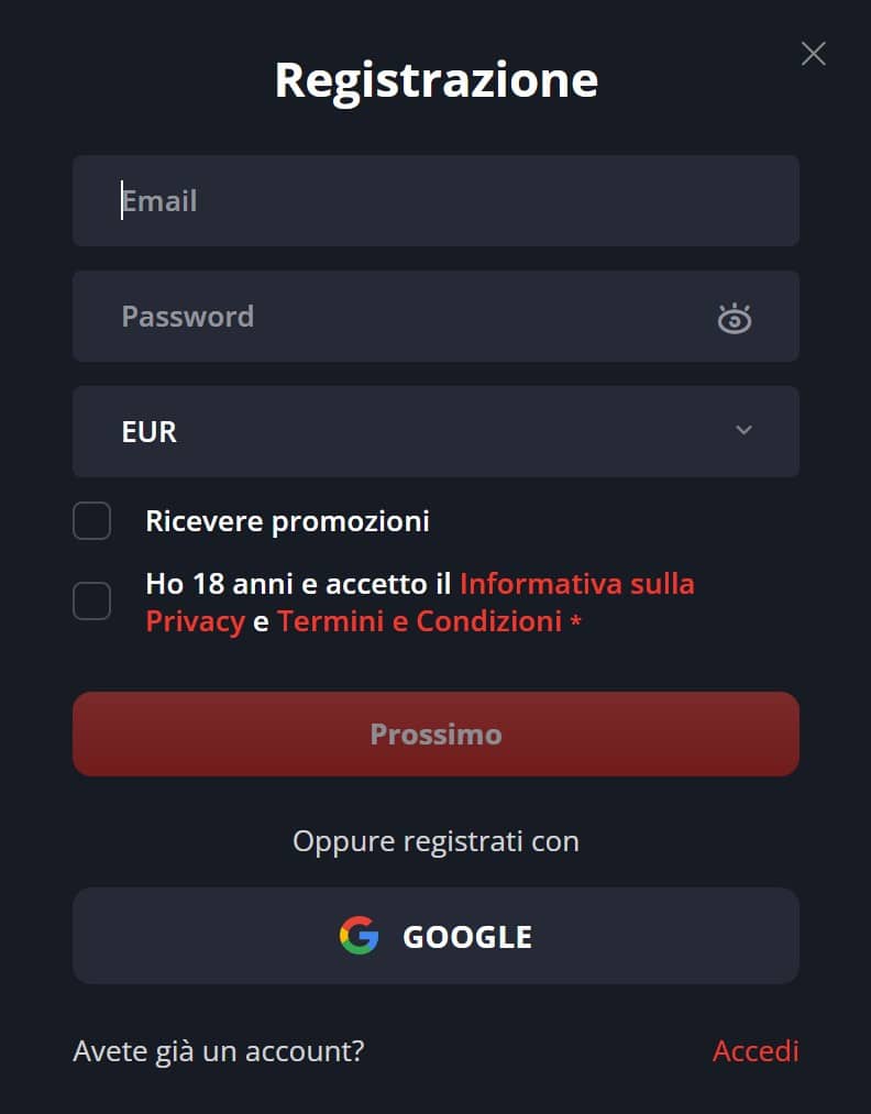 | Bonus senza deposito | 10€ in omaggio al momento della registrazione |